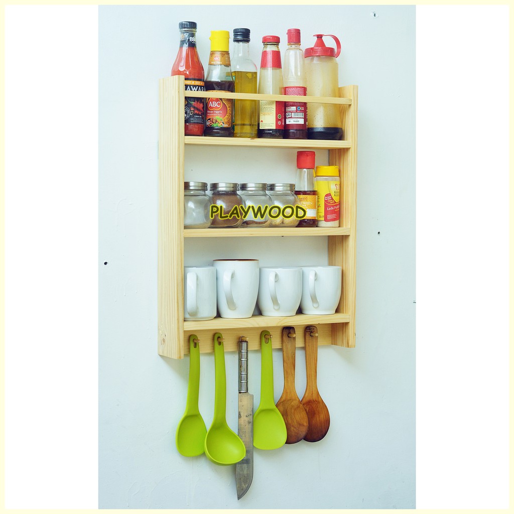Rak Dinding Kayu Jati Belanda Tempat Bumbu Dapur susun . Sumber Gambar : shopee.co.id